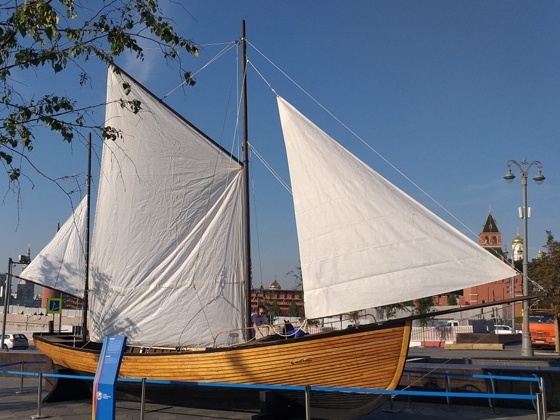 Вытегорские ребята построили судно по найденным чертежам в 2014 году. Руководили работами опытные мастера. В Зарядье вельбот стал частью уличной инсталляции. Вологжане рассказывают посетителям историю строительства судна. Также проводятся мастер-классы по вязанию морских узлов.