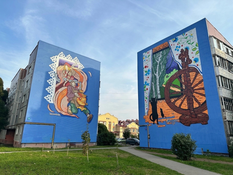 • Ярославская, 34-36 (кот, большая прялка, сказочные персонажи);