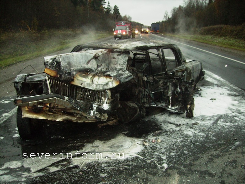 "Волга" столкнулась с "Land Rover" и взорвалась в Вологодской области