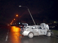 Иномарку откинуло на световую опору после столкновения с грузовиком. Не обошлось без пострадавших. Авария произошла во вторник, 14 октября, в 18:20 на 9 километре северной автодороги.