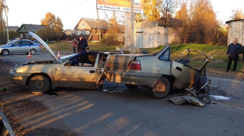 В Бабаево легковушку разорвало пополам в пьяной аварии, несколько человек получили травмы. ДТП случилось вчера, 14 октября, около четырех часов дня на улице Свердлова в райцентре. 32-летний шофер «Дэу Нексии», будучи пьян за рулем, влетел в бордюр, машину завертело на дороге, она перевернулась несколько раз, кузов разорвало надвое.