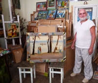 На протяжении 40 с лишним лет жил и трудился в Вологде. Ценители творчества легко узнавали художника по колоритной бороде и его знаменитым красочным мозаикам.