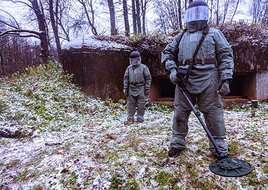 "При проведении инженерной разведки укрепленного района с использованием искателя контактных взрывных устройств ППО-2И были обнаружены останки красноармейца с двумя гранатами РГ-33, который погиб здесь, защищая свою Родину с оружием в руках", - рассказывают в департаменте информации и массовых коммуникаций Минобороны РФ.