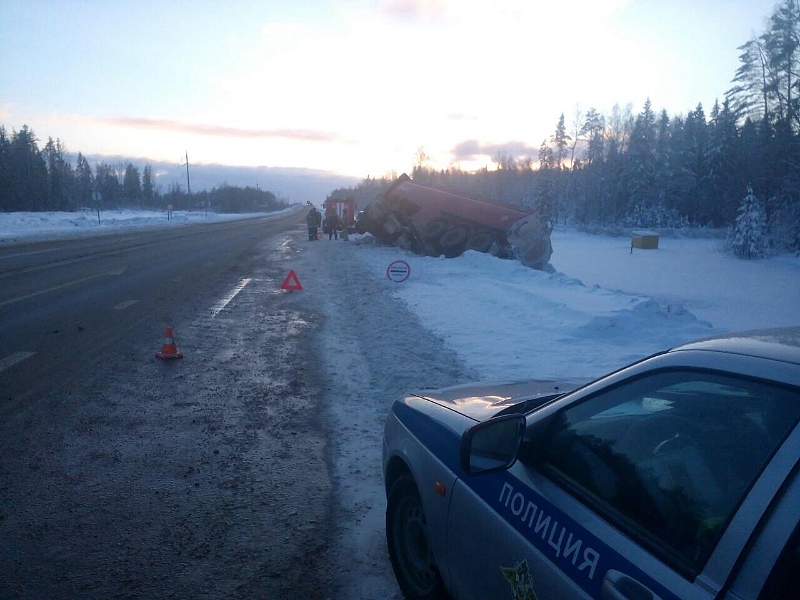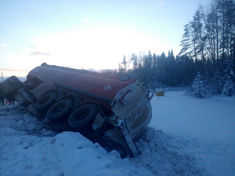 В результате ДТП грузовик съехал на обочину и опрокинулся на бок. Цистерна повреждений не получила, в ней находилось порядка 30 тонн бензина марки «AИ-92».