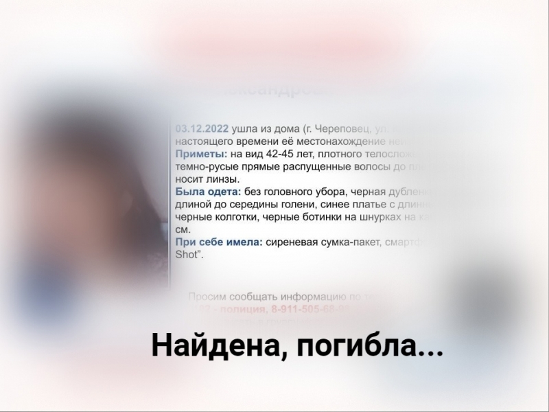 Череповчанку обнаружили утром 5 декабря — они была мертва. Тело нашли в районе гаражей на улице Боршодской. Видимых следов насильственной гибели специалисты не заметили. Рядом лежали личные вещи женщины, пояснили в СУ СК РФ по Вологодской области.