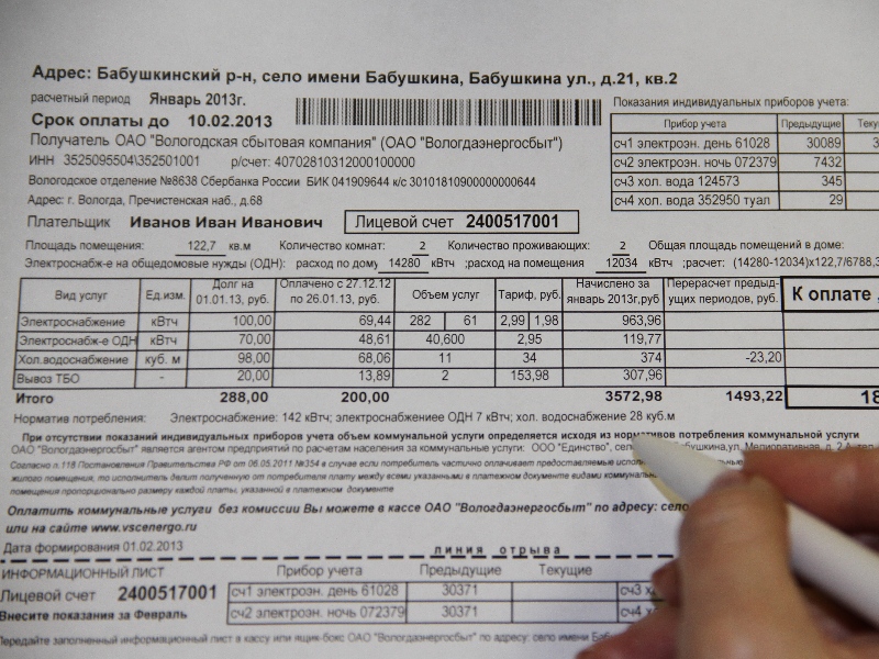 Первую необычную общую квитанцию за потребление в январе воды, электричества, за вывоз мусора бабушкинцы получат в начале февраля. В ней будут рассчитаны суммы, начисленные по каждому виду услуг, и общая сумма платежа. Это первый подобный опыт в Вологодской области. Инициатор «пилотного» проекта – ОАО «Вологдаэнергосбыт» - берет на себя начисление платы, расчет льгот, изготовление и доставку квитанции, сбор платежей не только за электроэнергию, но и за другие коммунальные услуги. Оплата поступает в «Вологдаэнергосбыт», а дальше расщепляется между поставщиками пропорционально стоимости оказанных услуг. В рамках подготовительного этапа проведена унификация абонентской базы, в дальнейшем предусмотрен обмен оперативными данными между поставщиками услуг. Платежный документ будет сформирован в соответствии с требованиями законодательства, как ежемесячный полноценный счет.
