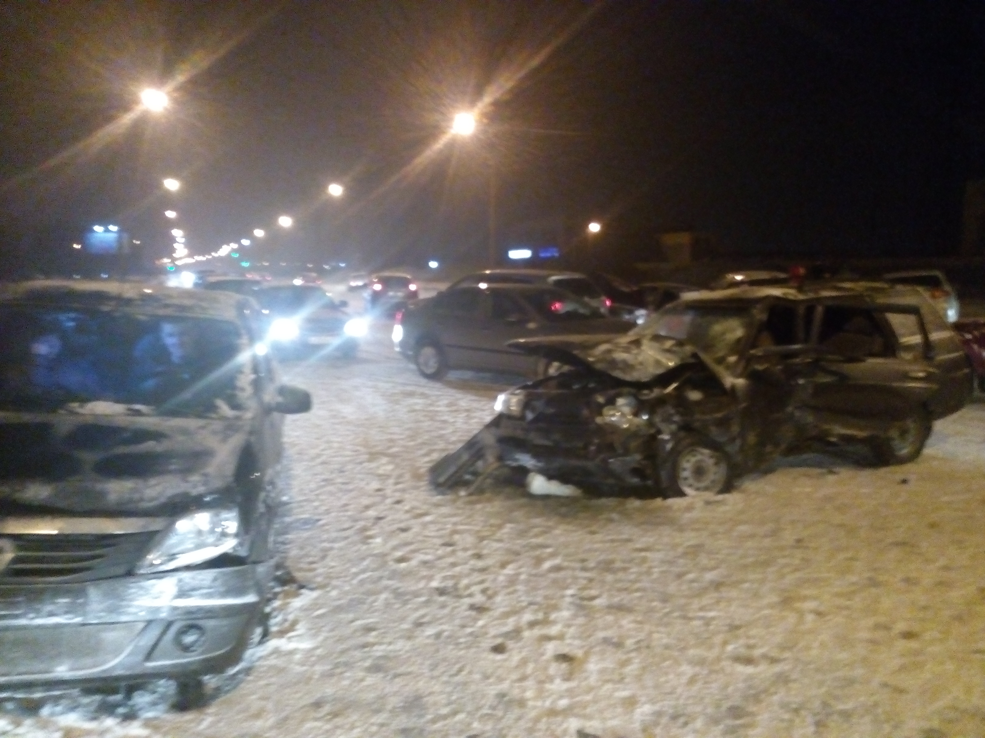 Еще несколько машин столкнулись в тот же день в Череповце. По предварительным данным, водитель Daewoo Nexia, избегая столкновения с резко затормозившим перед ним автомобилем ВАЗ-2109, выехал на встречную полосу, где столкнулся с ВАЗ-2111 и Renault Logan. В этот момент водитель Opel Astra, ехавший следом, стал уходить вправо и столкнулся с Shevrolet Lacetti, которая притормаживала перед поворотом направо. В результате столкновений пострадала 26-летняя пассажирка Renault Logan - у нее сотрясение головного мозга. 60-летний водитель ВАЗ-2111 получил сотрясение мозга и травму плеча. Пассажир ВАЗ-2111 получил закрытую черепно-мозговую травму, сотрясение мозга и переломы ребер. Пассажирка ВАЗ-2111 получила закрытую черепно-мозговую травму и перелом левой голени. 27-летний водитель Daewoo Nexia получил сотрясение мозга и перелом правой стопы, а его трехлетний мальчик-пассажир - также сотрясение мозга.
