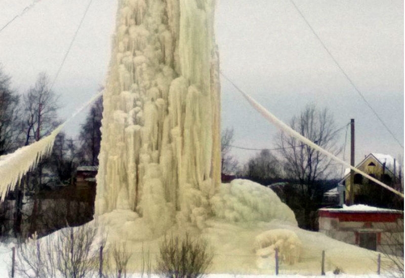 Водонапорная башня в Вологодской области из-за перелива стала ледяной глыбой