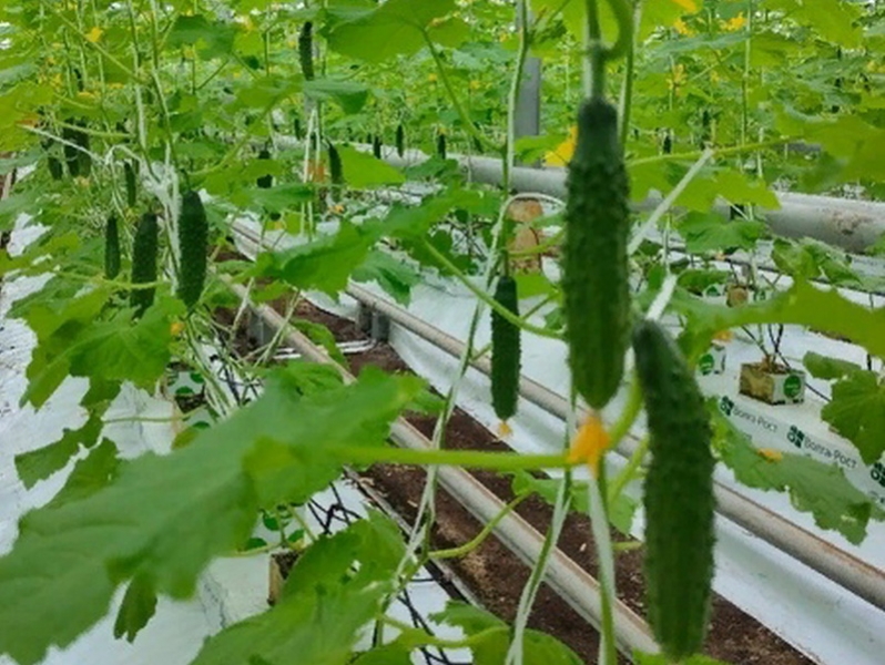 В теплицах комбината «Тепличный» созрел первый урожай огурцов.