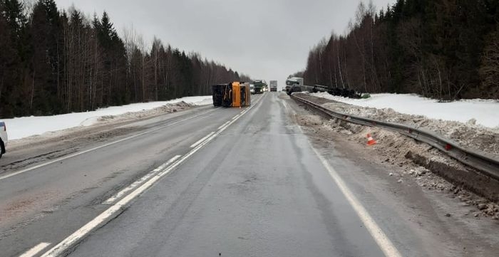 Связаны ли эти ДТП, предстоит установить инспекторам. Известно, что в ночь на 16 марта, в начале пятого утра на 393 километре автодороги Москва - Архангельск два большегруза на полном ходу перевернулись на бок.