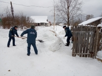 Молодые сотрудники части в Вожеге расчистили двор от снега у ветерана.