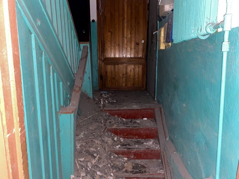 В момент происшествия в подъезде никто из людей не было, поэтому обошлось без пострадавших. Часть потолка упала на лестничный пролет.