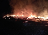 Огонь полностью уничтожил деревянный склад в селе Маэкса и повредил внутреннюю отделку административных помещений второго этажа.