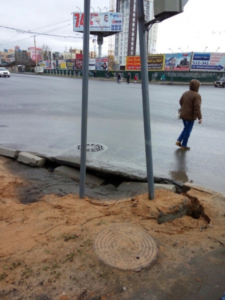 В Вологде на одном из самых оживленных перекрестков начал проваливаться асфальт