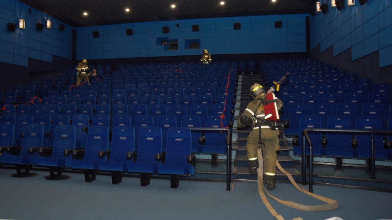 Учения по ликвидации пожара прошли сегодня в ТРЦ на Пошехонском шоссе. По легенде огонь возник в зале кинотеатра. Сигнализация сработала от дыма. В течение нескольких минут на место выехали 12 автоцистерн, два автолестницы, подъемник, унифицированная компрессорная станция для заправки баллонов средств защиты. В операции было задействовано 60 человек личного состава. Пожару присвоили 3 уровень сложности.
