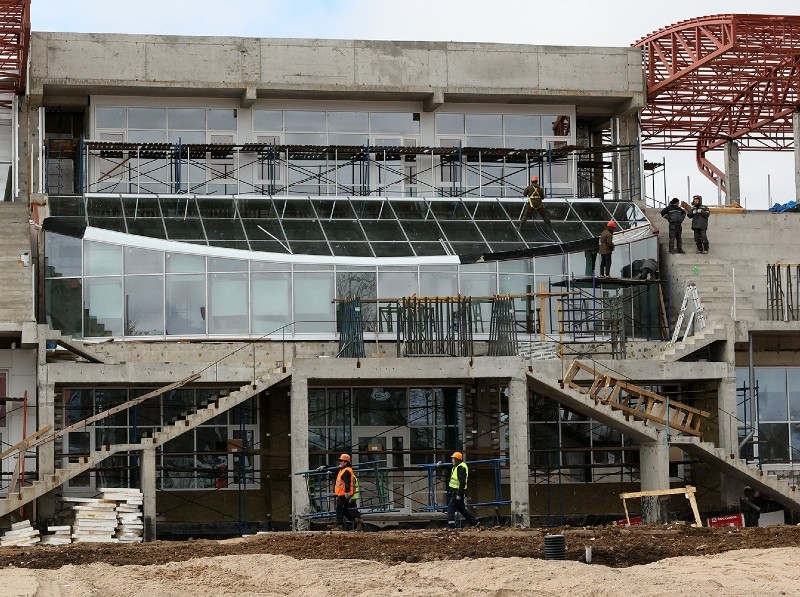 На данный момент готовность спортивного объекта составляет 70 процентов.