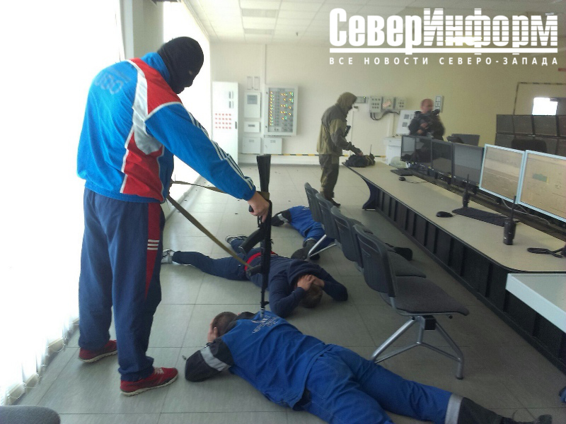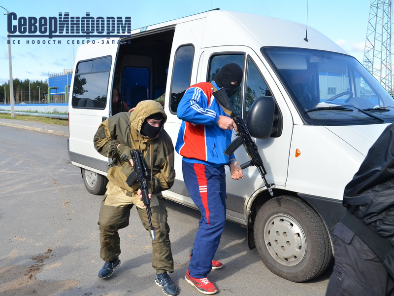 В 08:30 вторая группа "террористов" напала на пост охраны плотины на реке Суда, ранила сотрудников вневедомственной охраны. Преступники заминировали механизмы управления гидрозатворами", - пояснили задумку в пресс-службе УФСБ по Вологодской области.