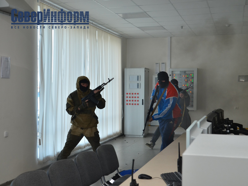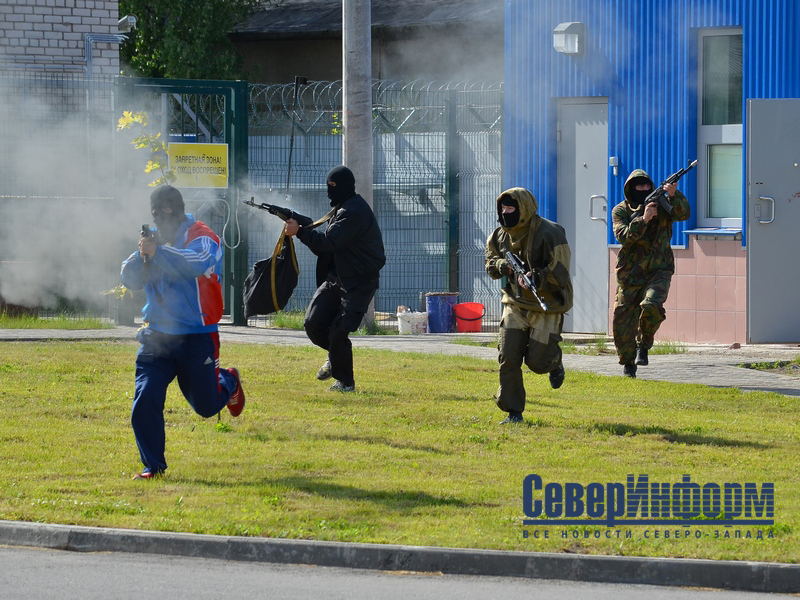 "На территории Кадуйского района вводится правовой режим контртеррористической операции. Правоохранительные органы блокируют здания, где скрываются преступники, оцепление прилегающей территории. Организовано движение транспорта в объезд зон оцепления. В ходе переговоров не удается склонить террористов к отказу от преступных замыслов. Руководитель штаба принимает решение о проведении на территории Череповецкой ГРЭС и учебного центра "Заозерье" боевых мероприятий. Спецподразделения УМВД и УФСИН выполняют штурм зданий, обезвреживание боевиков. Заложники освобождены, пострадавших нет. Во время штурма 4-го энергоблока ГРЭС террористы успевают привести в действие одно из взрывных устройств, расположенных на резервуаре с дизельным топливом. Происходит возгорание горючих материалов. Расчеты ГУ МЧС приступают к минимизации и ликвидации последствий взрыва", - рассказали сценарий сотрудники пресс-службы УФСБ России по Вологодской области.
