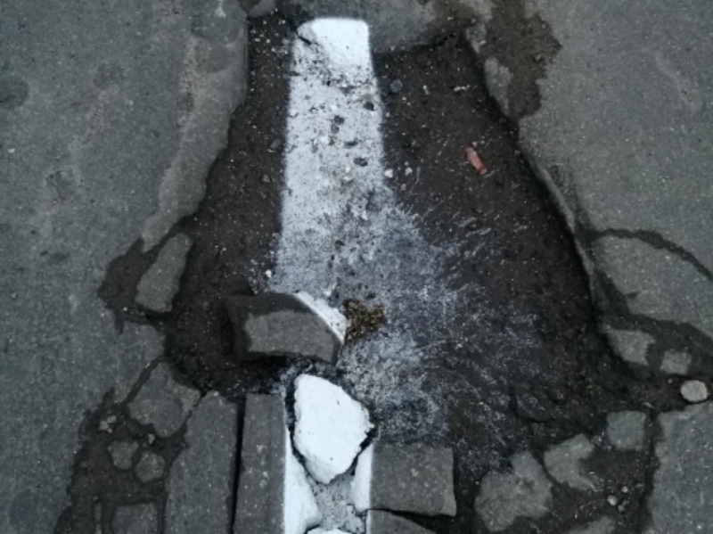 В социальных сетях появились фотографии разделительной полосы на улице Металлистов, которую сделали прямо по ямам на проезжей части.