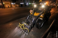 «Мы проконсультировались со столичными коллегами, немного доработали технологию. Используем летнее моющее средство, биоразлагаемый продукт. Промываем тротуар, наносим моющий раствор, даем ему выстояться и щетками прометаем. Затем еще раз моем. Всего три-четыре прохода спецтехники получается. Песок, смет убирается на проезжую часть, ее промываем самой последней — для удаления в канализацию всех остатков», - пояснил заместитель директора «Спецавтотранса» Дмитрий Дураничев.