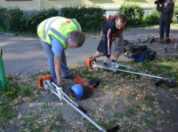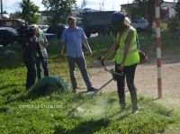 Вологодские журналисты скосили траву на школьном стадионе