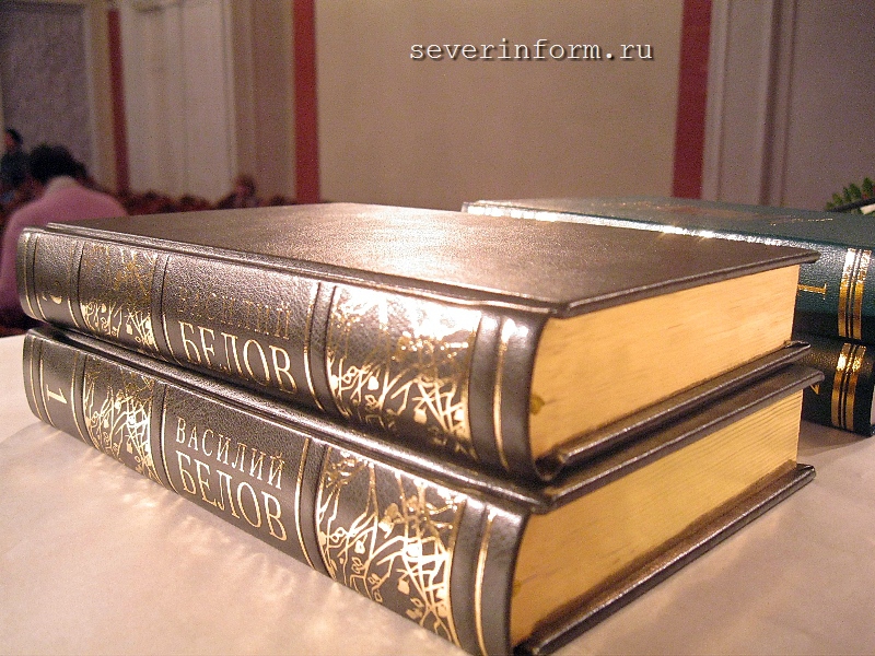 «Мы гордимся тем, что живем на родине Василия Ивановича и имеем возможность учиться у него чистоте русского языка. Сегодня мы хотим представить общественности новое издание – сборник сочинений Василия Белова, – рассказал Вячеслав Позгалев. - Книгу издали как в подарочном варианте, так и в виде, доступном широкому читателю. И, обращаясь к вам, к писателям, держащем оборону на этом пятачке русской словесности, я прошу подумать и сделать так, чтобы читали больше. А мы издавали, издаем, и будем издавать книги. 5 тысяч экземпляров для полного собрания сочинений - это по сегодняшним временам хороший тираж».