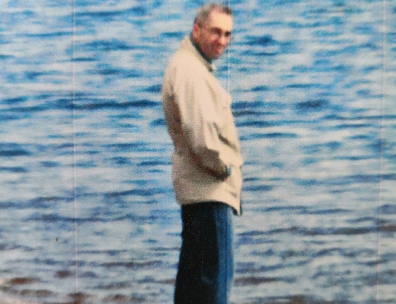 Мужчина на фото средних лет, высокого роста, среднего телосложения, немного сутулится. Был одет в синие брюки, светлую куртку. Предположительно носит очки.