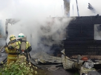 Днем загорелся 2-этажный дом и баня. Общая площадь пожара составила 66 кв. м. В ликвидации пожара участвовали 20 человек и 5 единиц техники.