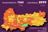 Всего с начала пандемии зарегистрировано 8999 случаев, активных - 1460. Выздоровели 7465 человек, в том числе, 96 - за сутки.