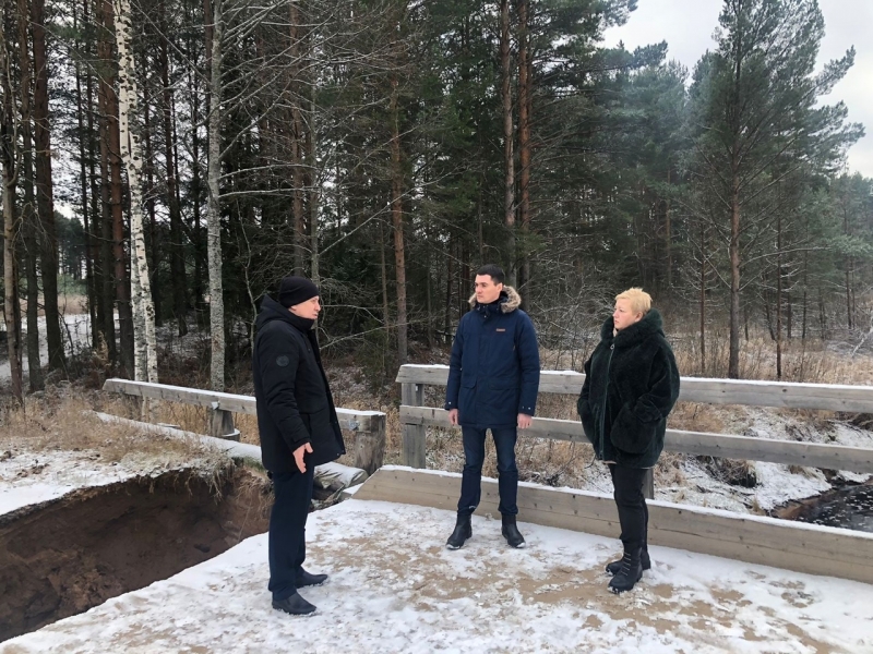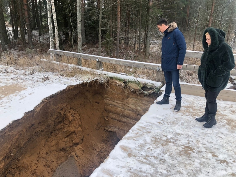 Происшествие случилось утром 16 ноября в деревне Красный Двор Уломского поселения. В результате обвала между дорогой и мостом образовалась огромная яма. На место выезжал глава района Роман Маслов, чтобы принять решение по аварийно-восстановительным работам.
