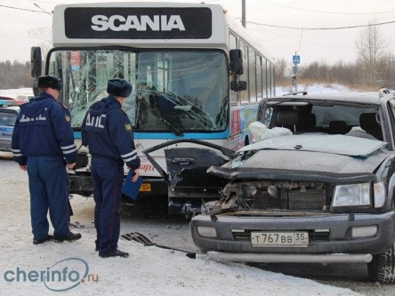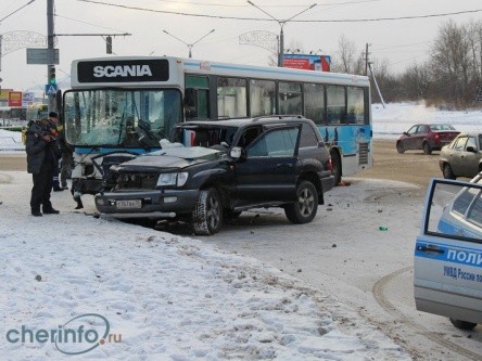 Автобус врезался в джип в Череповце