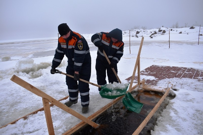На Онежском озере купель обустроят спасатели АСУНЦ "Вытегра". Она будет находиться около храма Ионы Клименецкого. Там будет поставлена палатка и на всякий случай приглашены медики.