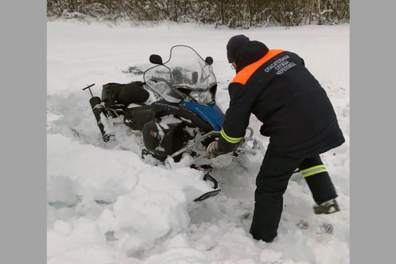 Рыбак двигался по льду в Череповецком районе. Вытаскивать застрявшую технику пришлось спасателям. Случай произошел в субботу, 15 января.