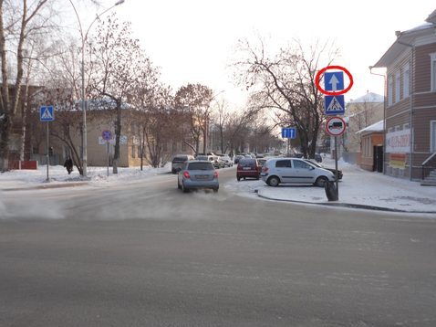 На перекрестке улиц Пошехонское шоссе — Казакова движение из центра города разрешено только прямо либо направо