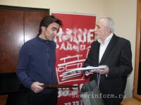 «Этот альбом подготовили и выпустили наши фотохудожники на собственные деньги, - рассказал Игорь Степанов Вячеславу Бутусову. – Самое главное, что вы не увидите в этом альбоме ни одного политического лица, здесь только виды Вологды». Спикер городского парламента рассказал также гостю о том, что давно является поклонником его творчества и очень рад видеть его в Вологде. В ответ Бутусов поблагодарил за внимание и теплый прием.