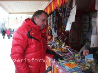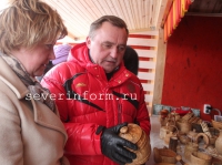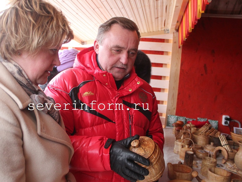 Сувениры и посуду приобрел Глава Вологды Евгений Шулепов на масленичной ярмарке. Торговые ряды работают в центре Вологды в выходные. Самой первой покупкой градоначальника стали текстильные открытки, которые он тут же подарил своим заместителям. Далее внимание Главы привлекла миниатюрная фигурка Масленицы, которую он тоже приобрел. Покупка обошлась в 50 рублей. Потом Евгений Шулепов прошел к следующему киоску, где его заинтересовала керамическая посуда. Там он покупать ничего не стал, уделив больше внимания прилавку с деревянной посудой, где выбрал для себя декоративный горшочек.