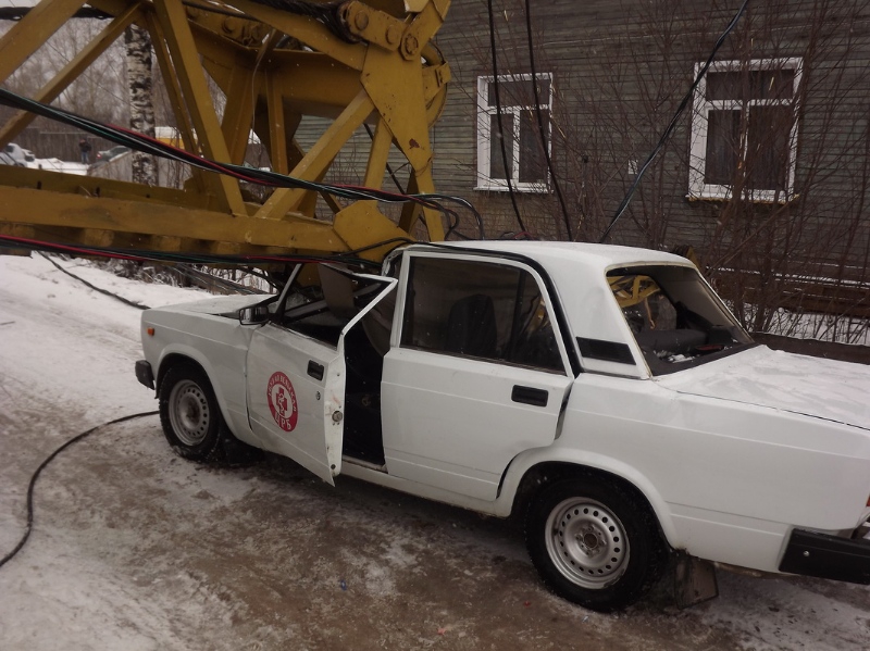 ЧП случилось в городе Вельске Архангельской области. Там на одной из строек стрела строительного крана упала на легковой автомобиль, который принадлежит Вельской районной больнице.