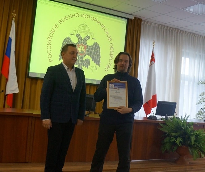 В Общественной палате Вологодской области вчера, 16 марта, отметило пятилетний юбилей вологодское отделение Российского военно-исторического общества. Местный филиал РВИО был основан в феврале 2014 года, сейчас его ряды насчитывают около 280 человек. При этом, как рассказал председатель организации Александр Метелкин, за прошлый год в общество вступили 102 новых участника, порядка 30 из них на мероприятии официально вручили членские билеты. Также отличившиеся члены РВИО были награждены благодарностями губернатора области (их вручил заместитель главы региона Эдуард Зайнак), председателя Заксобрания и Общественной палаты.