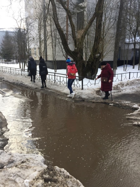 Неубранный с обочин снег тает, и вода стекает на дорогу или остается на тротуаре. Обходя лужи, люди часто приближаются к проезжей части, где их и настигает беда в виде грязных брызг из-под колес проезжающих автомобилей.