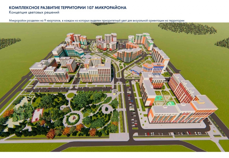 На территории в 23 гектара построят дома высотой от 10 до 16 этажей, три детских сада. Также сделают тематический парк, велодорожки и зеленый пешеходный бульвар.
