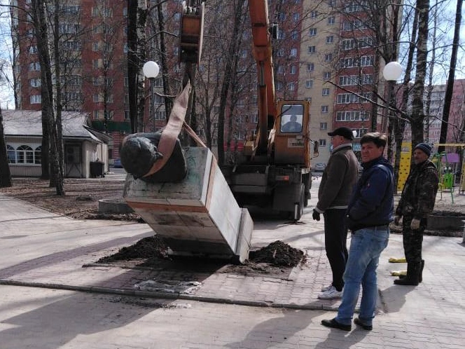Скульптура упала в четверг, 16 апреля. Памятник располагается в сквере на одноименной улице. По всей вероятности, спецтехника во время уборки сдавалась назад и задела монумент.