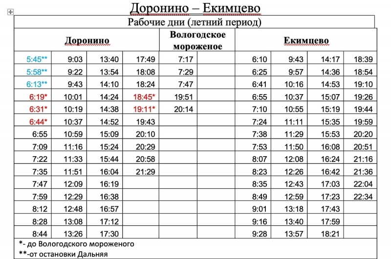В Вологде это маршрут №42 «Доронино (Дальняя) - Екимцево». С 20 апреля он будет продлен до остановки «Доронино» на все лето. Расписание рейсов уже утверждено.