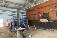Сейчас на площадке продолжаются внутренние работы: строители ведут кладку стен и заделывают стыки стеновых и кровельных панелей. Завершить строительство планируется летом.