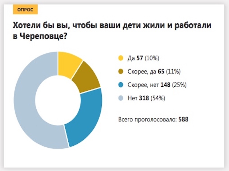 Недавно на официальном сайте Череповца был запущен опрос на тему "Хотели бы вы, чтобы ваши дети жили и работали в Череповце?".