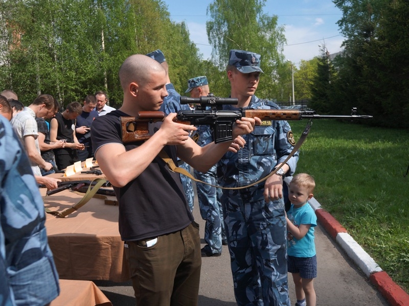 Во дворе сборного пункта собрались будущие и настоящие призывники. Ребятам, уходящим на службу, юнармейцам и школьникам показали военную технику и оружие, а также рассказали об особенностях технического оснащения в армии.
