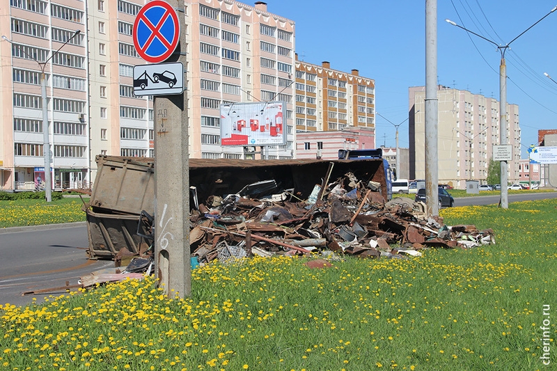 На проезжую часть и газон вывалилось около 18 тонн железного лома, сообщает официальный сайт мэрии Череповца