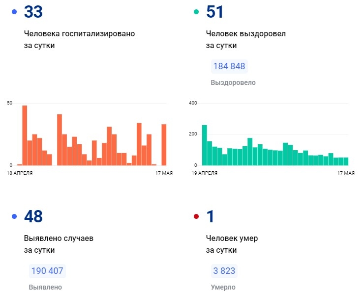 Переболели ковидом более 184 тысяч жителей региона, в том числе, за сутки выписали с больничного 51 пациента. На койках моногоспиталей оказались 33 человека. Накануне в статистике не было новых пациентов отделений, специализирующихся на лечении больных с коронавирусом.