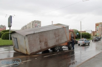 В Череповце с грузовика во время движения упал гараж