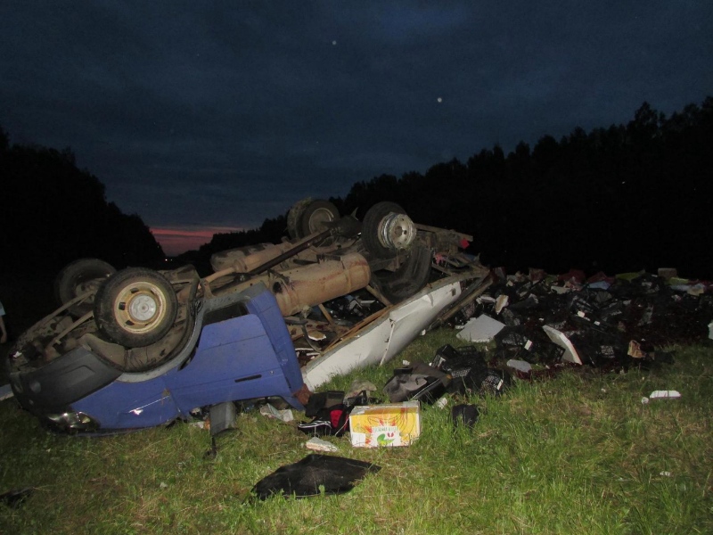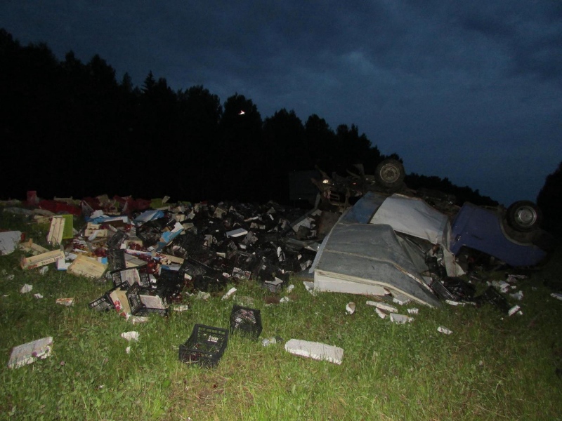 В результате ДТП с участием лося в Сокольском районе перевернулся гружёный овощами автомобиль