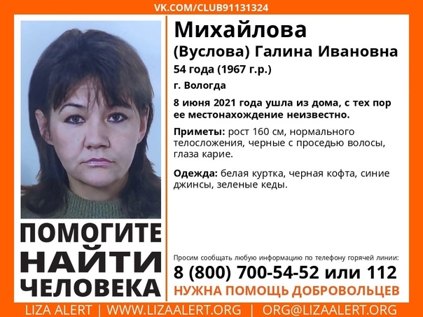 54-летняя Галина Михайлова ушла из дома 8 июня. До сих пор неизвестно ничего о ее местонахождении. Поисковой отряд "Лиза Алерт" подключился к поискам.